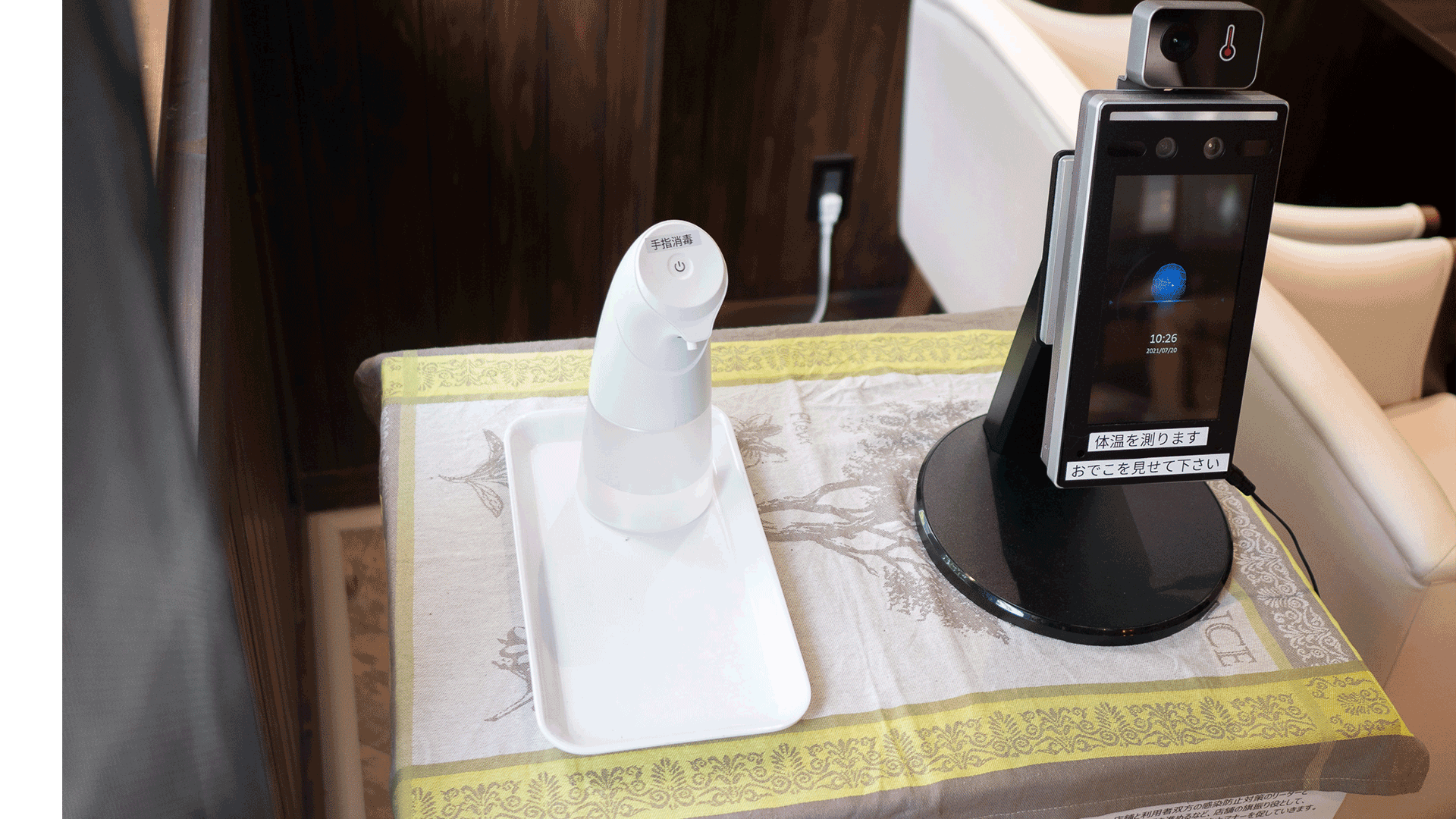 お客様の安心・安全のために、検温機の設置や換気・アルコール消毒、ソーシャルディスタンスの確保